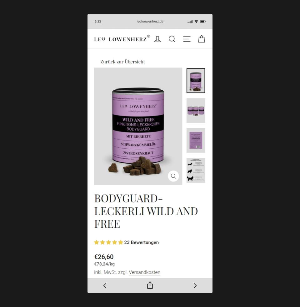 Der Tierfutter-Markt ist voll – aber echte Premium-Lifestyle-Marken für Hunde sind rar. LEO LÖWENHERZ wollte von Tag eins als Marke wahrgenommen werden, nicht als weiterer No-Name im Regal. Die gesamte Brand Identity musste von null aufgebaut werden: Logo, Verpackung, Shop, Positionierung – alles.